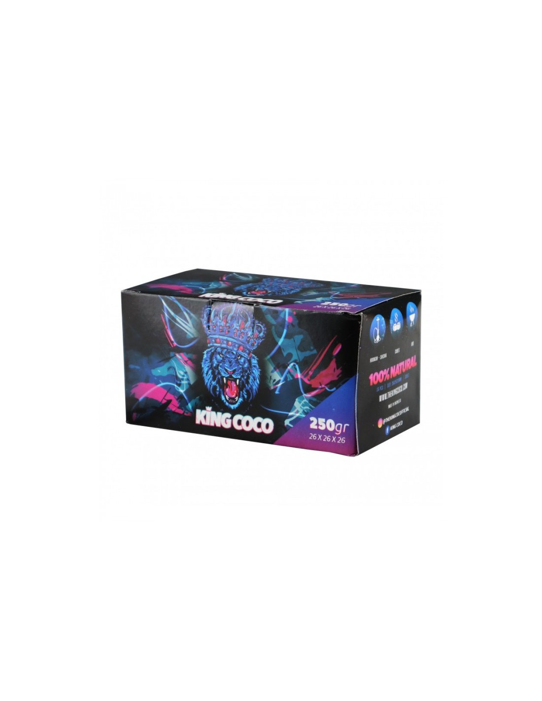 Nuevo carbón natural para cachimba KingCoco en caja de 250gr. Las pastillas vienen en formato CUBO 26x26mm